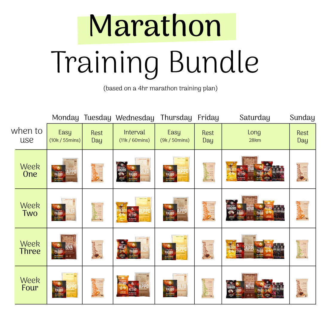 Beneath, you’ll also find a curated Marathon Training Bundle inspired by this plan, so you can fuel for success just like Millie.